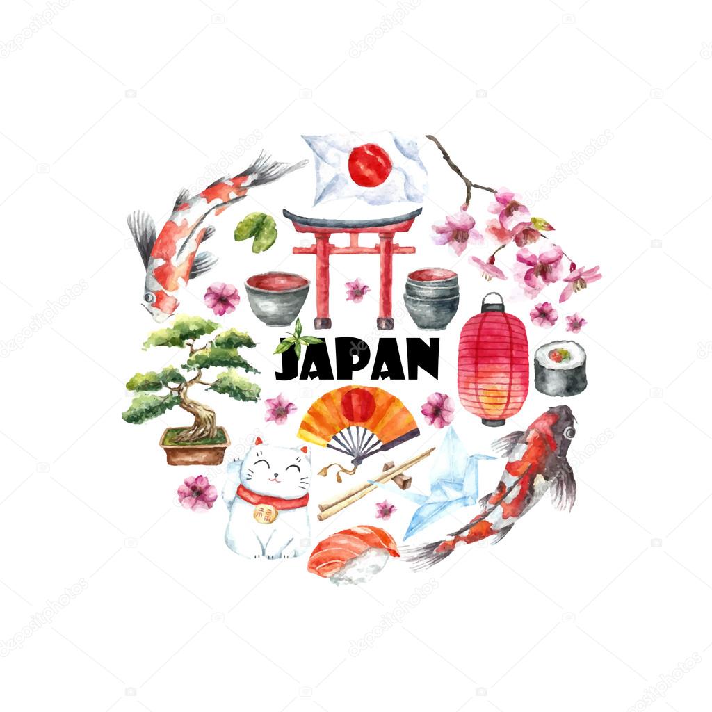 Aquarel Set Van Japan Stockvector C Vikeriya 85118908